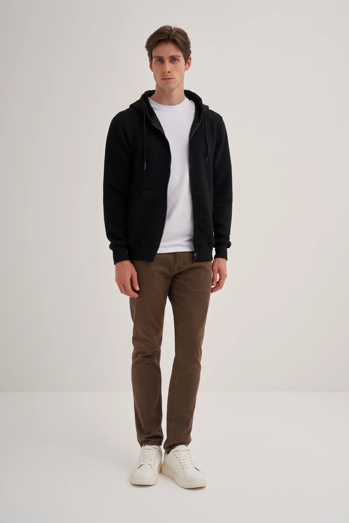 Ottoman Cotton Regular Fit Zip Hooded Jacket