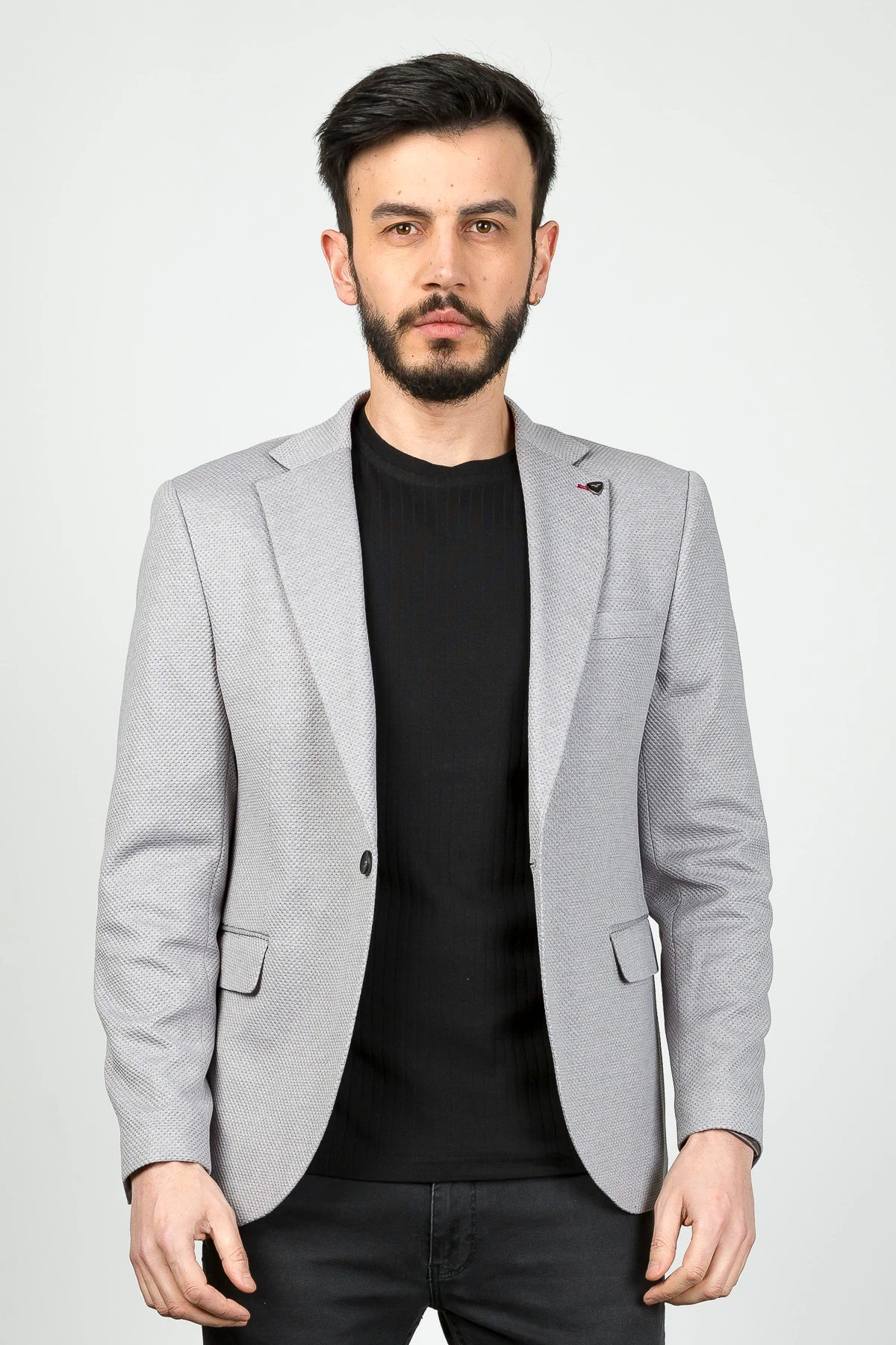 Textured Poly Viscose Slim Fit Blazer