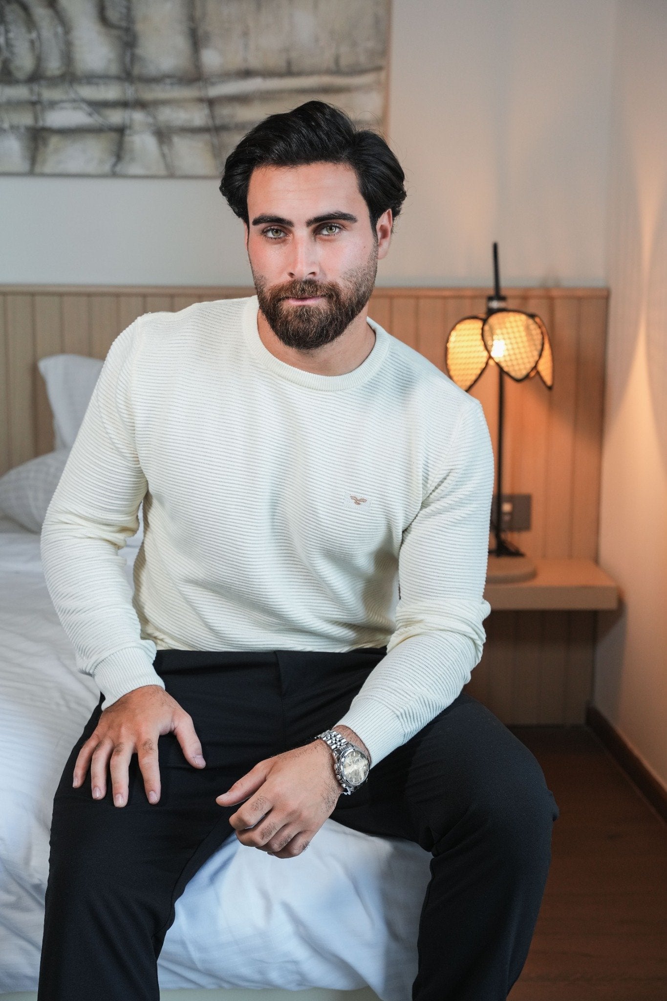 Textured Cotton Slim Fit Crew Neck Sweatshirt
